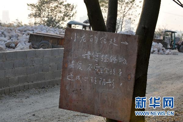 新華網(wǎng)南寧11月30日電(“中國(guó)網(wǎng)事”記者張鶯、王橙澄) 廣西柳州市城中區(qū)的一個(gè)村莊里,坑坑洼洼的土路塵土飛揚(yáng)。岔路口的兩塊指路牌指引著方向,“小龍的家→請(qǐng)您輕輕的關(guān)愛(ài),不要給孩子造成心理陰影”。