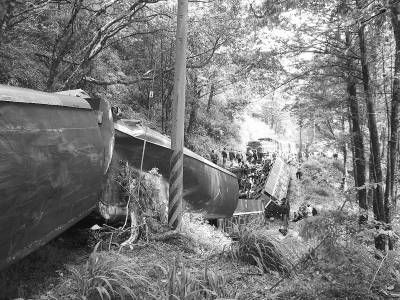 臺灣阿里山小火車翻車事故現(xiàn)場。新華社發(fā)