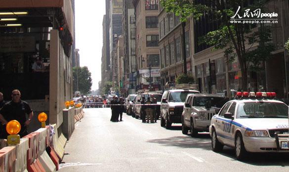[提要] 槍擊案發(fā)的第一現(xiàn)場,兇手就是在街道右邊的商店里打死了前同事。人民網(wǎng)紐約8月24日電 (記者 丁小希)紐約帝國大廈24日發(fā)生槍擊案,目前在警方和槍手交火中受傷的9人被送往醫(yī)院治療,暫時(shí)沒有生命危險(xiǎn),槍手已被擊斃。